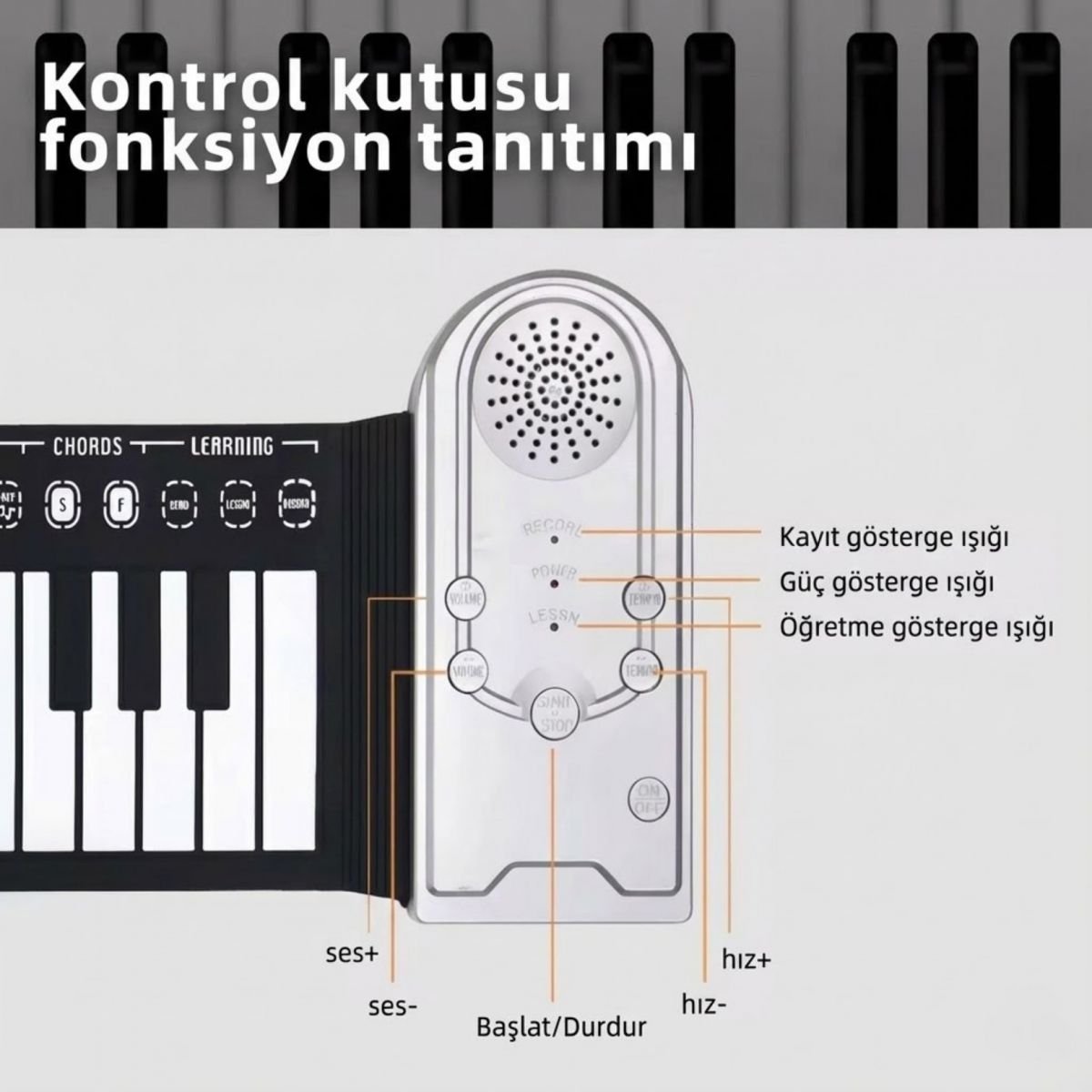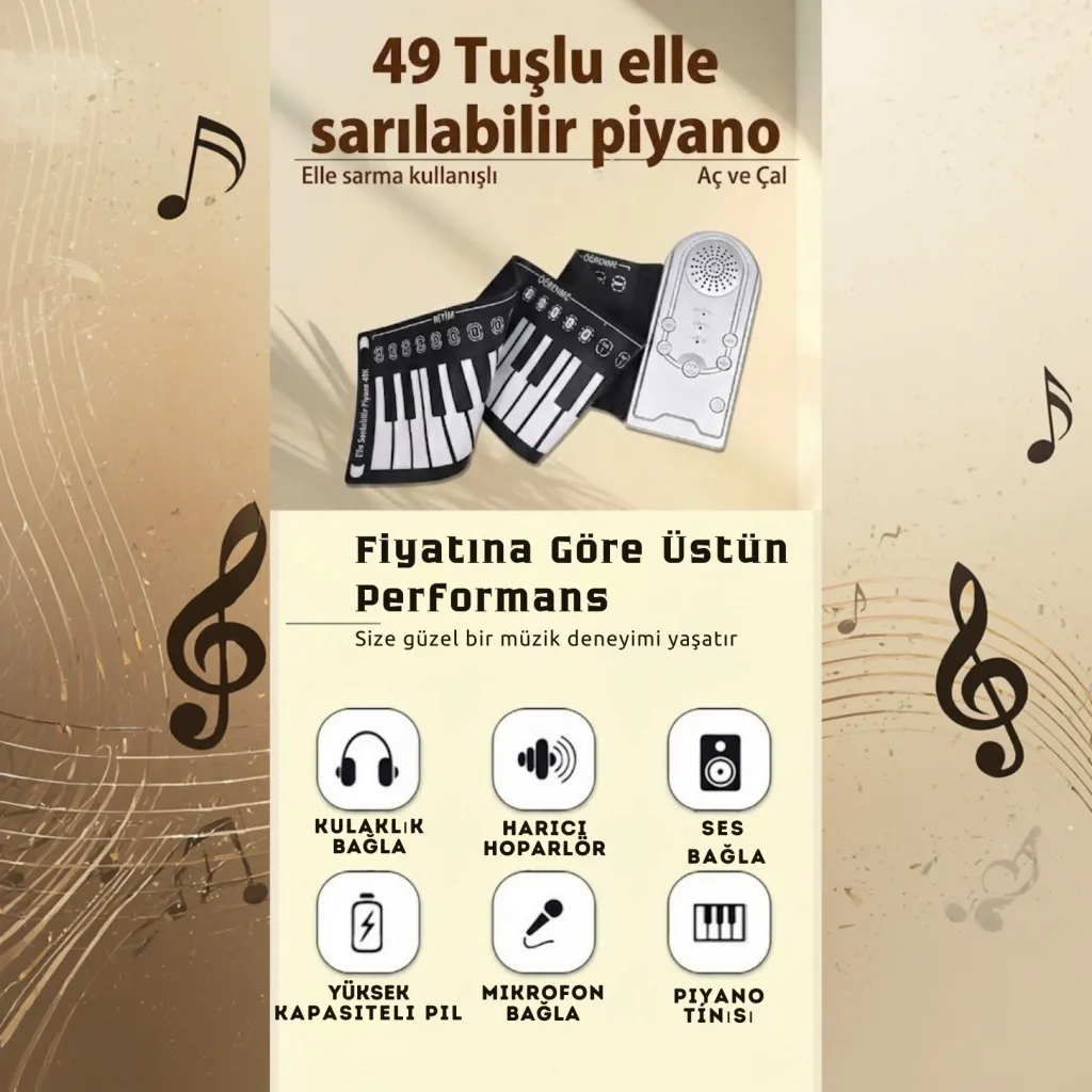 Müziğin keyfini istediğiniz her yerde çıkarın! Katlanabilir rulo klavye, gerçekçi piyano sesi ve çok fonksiyonlu yapısıyla hem yeni başlayanlar hem de müzikle iç içe olanlar için ideal bir müzik arkadaşıdır. Hafif ve taşınabilir tasarımı sayesinde evde, seyahatte veya dilediğiniz her ortamda kolayca kullanabilirsiniz. •Öne Çıkan Özellikler • 49 Tuşlu Gerçekçi Deneyim