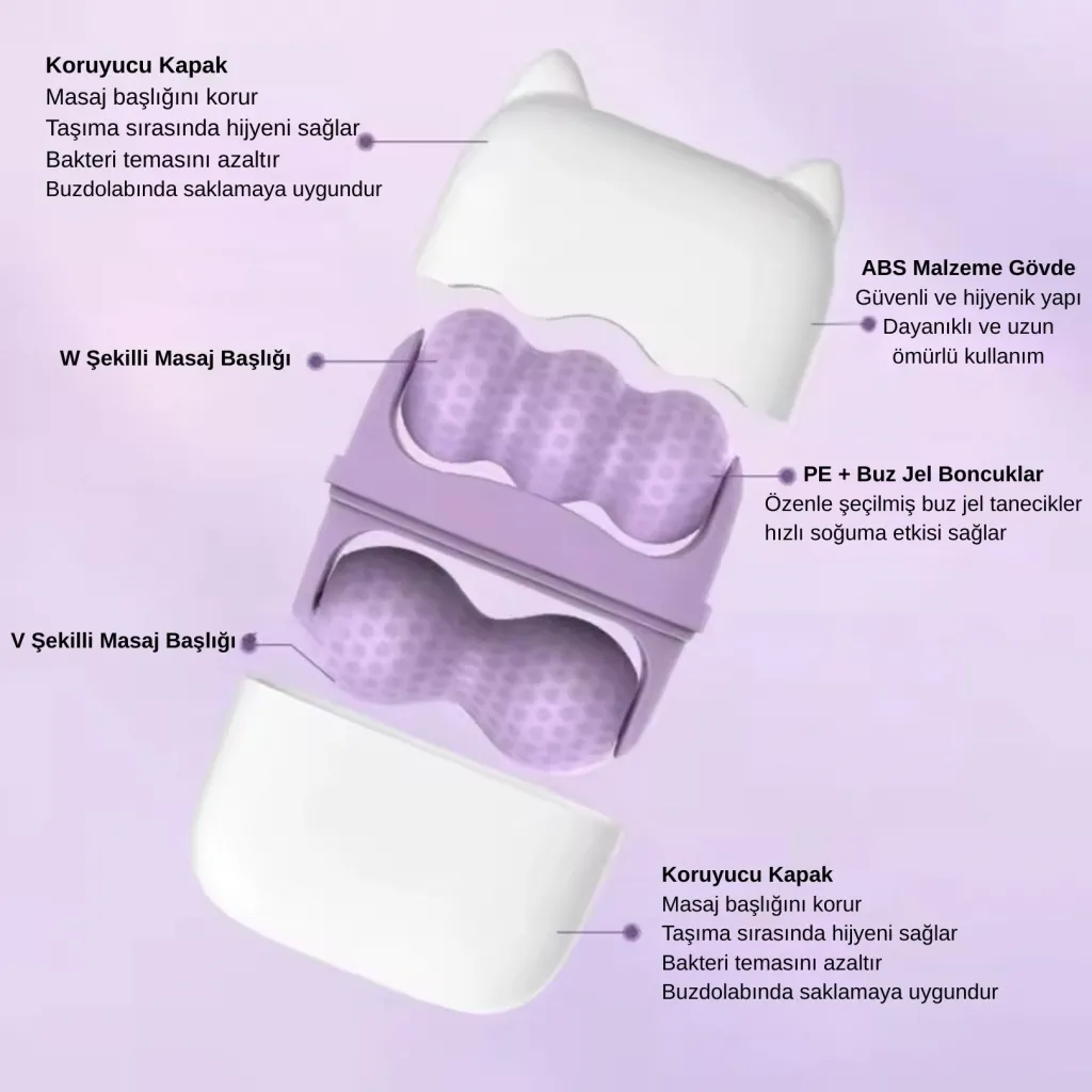 • Paket İçeriği 1 x Ice Face Roller (Çift Başlı Yüz Masaj Aleti)